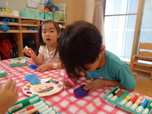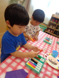 さてめろん組さんは英語の前に製作をしましたよ~。