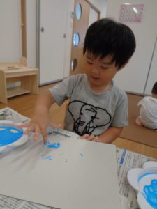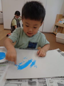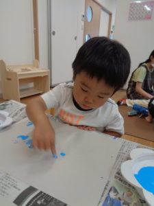 きれいな水色の絵の具を指にのせて・・ヌリヌリ~