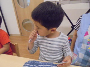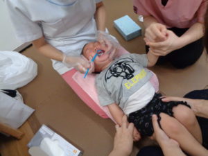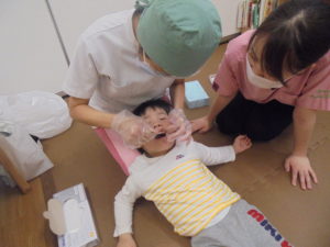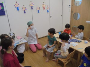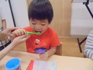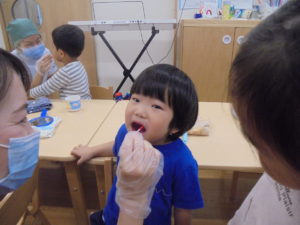 「この保育園のお子さんはみんなきれいに磨けていますね~」と褒めていただきましたよ(*^-^*)