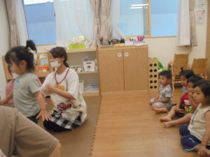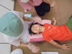 小さいお友だちから順番に先生のおひざにころりん!(^^)