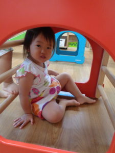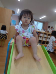 すべり台を滑ることやお家に見立てて中に入る事を楽しんでいましたよ!