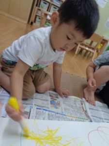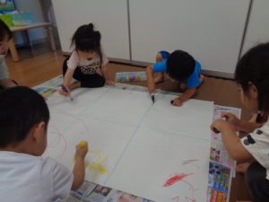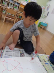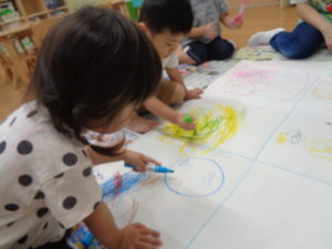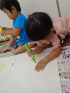 場所の取り合いにならないように枠の中に自由にお絵描きを楽しみました🖍