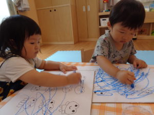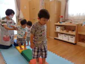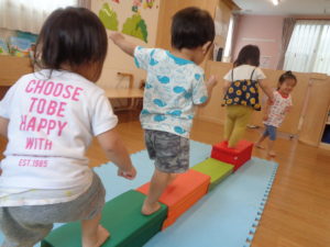 その後は、一本橋をしたり、ぬりえに挑戦しました。一本橋では、みんな上手にバランスを取りながら渡れていましたよ!!