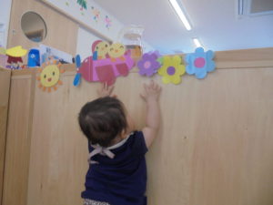 ハイハイしてお部屋の中を探検しました♪ お部屋の中のお花にも興味津々の子もいました(*^-^*)