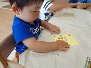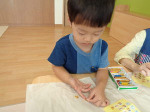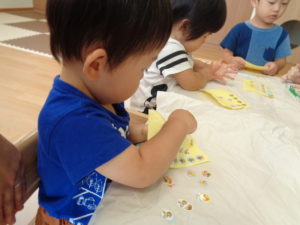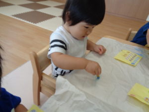 スズ組さんは、お部屋でシール貼りやクレヨン、ダンスをして過ごしました。