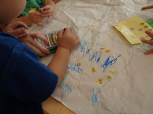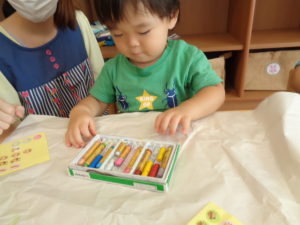 クレヨンも、好きな色を選び、のびのびと描きました。
