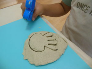粘土では、型抜きを選び、くり抜いていきます。