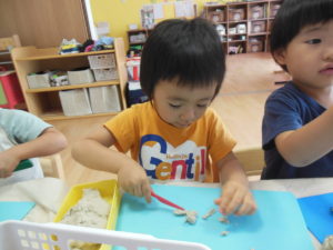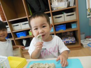 タンバリン組さん・ピアノ組さんは、粘土遊びやシャボン玉をして過ごしました。