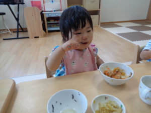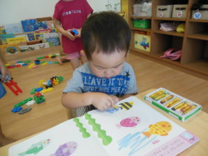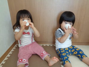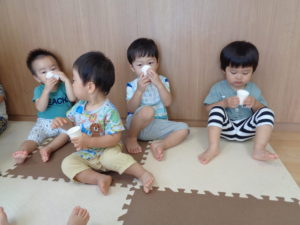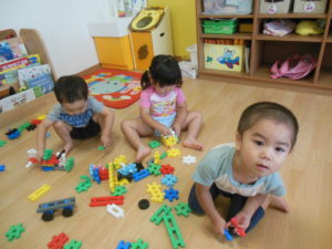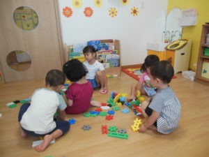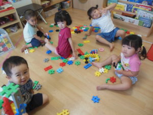 お部屋で子どもたちは暑さも忘れ楽しそうに遊んでいました。😊(明)