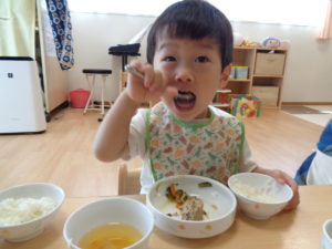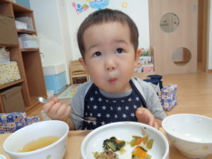 カメラを向けるとかっこよくお野菜を食べる姿を見せてくれる子もいました。