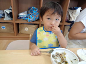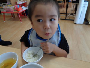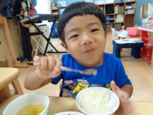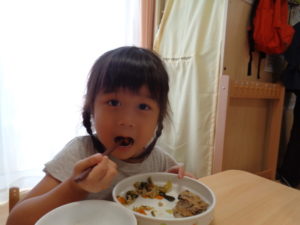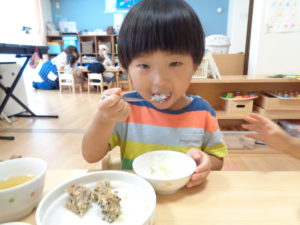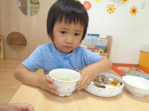 ふわふわのつくねはみんな食べやすそうで、おいしいと声を掛けてくれる子が多かったです。