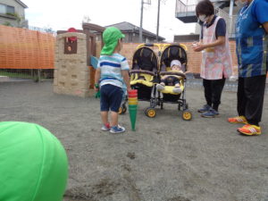 カスタネット組のお友だちも園庭に来ると様子を見に行くスズ組さん☆