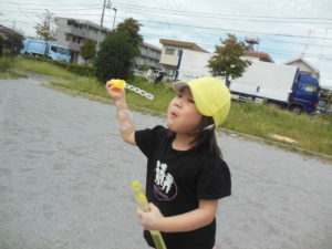 広い広場でシャボン玉をしたり、走ったりして体を動かしました!
