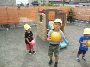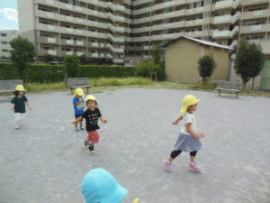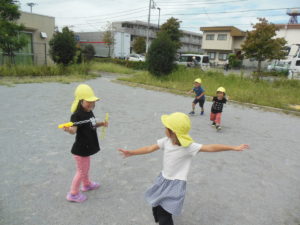 風が吹き気持ちの良い中でスズ組さんは園庭遊び!