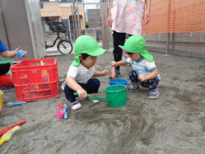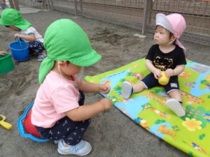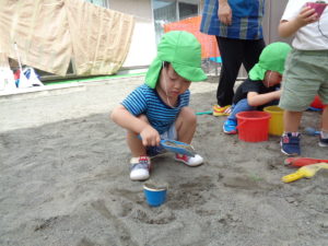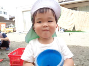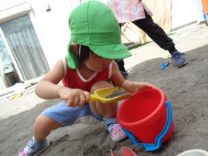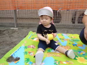日陰の中、心地よい風を受けて大好きな砂遊びをしました😊
