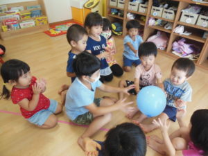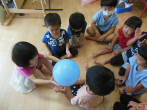 タンバリン、ピアノ組さんはお友だちと仲良く、風船遊び😊