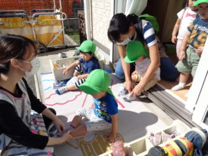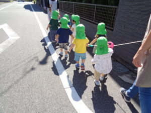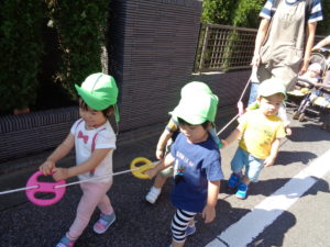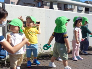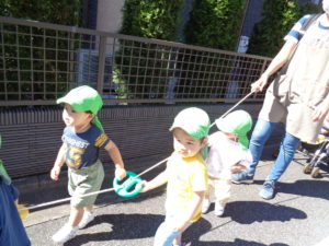 久しぶりに良く晴れた気持ちの良い日でしたね。子どもたちも元気いっぱいお散歩を楽しみました。