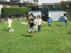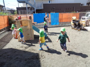大きいクラスのお友達は新畑子ども広場にお散歩です。伸び伸びと気持ちよさそうに遊んでいますね。