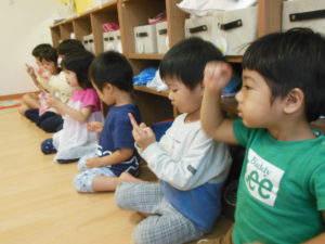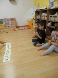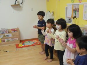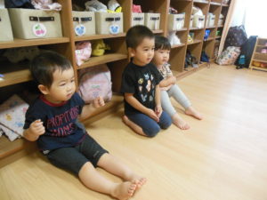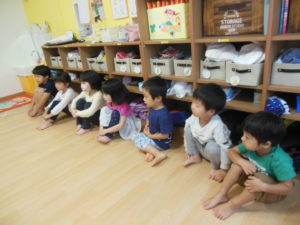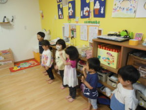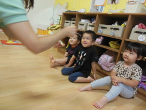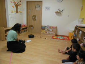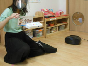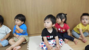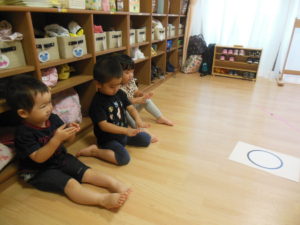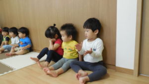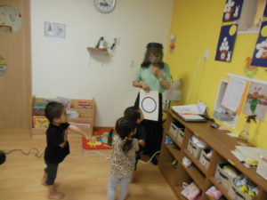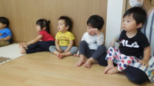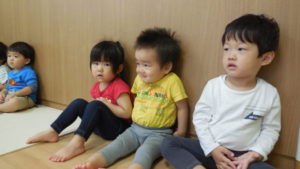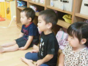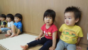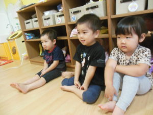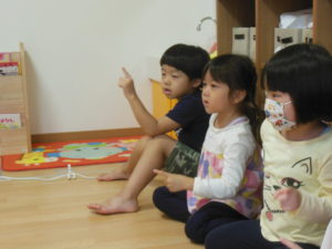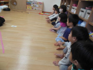 楽しみに待つお友だち、初めての英語にドキドキするお友だちの姿が見られました。