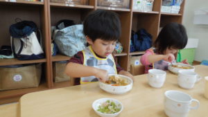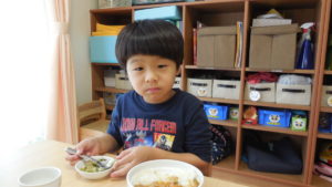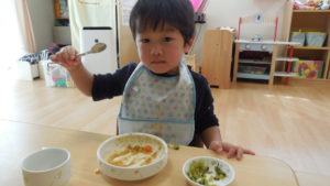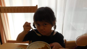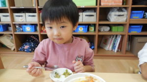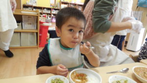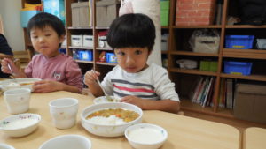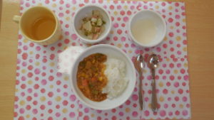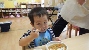 カレーライスは食べやすく、みんな大好きであっという間に完食する子が多かったです。