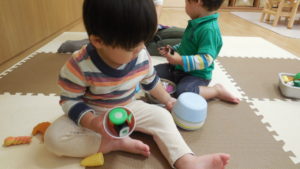 お誕生日会の後はお部屋でそれぞれ好きなおもちゃで遊びました。