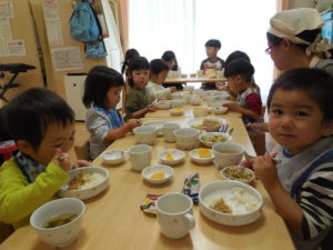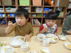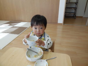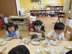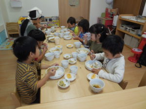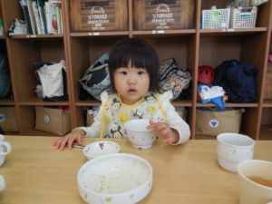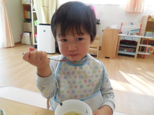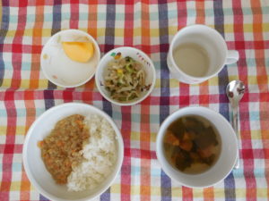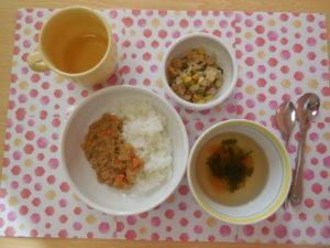 ドライカレーはチーズが入ってまろやかで野菜も細かく刻んであったので、皆よく食べ、おかわりもしました。
