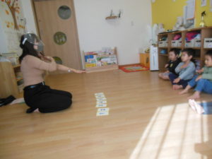 体の部位の絵カードを見ながら、元気に発音していました。