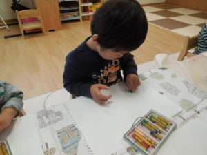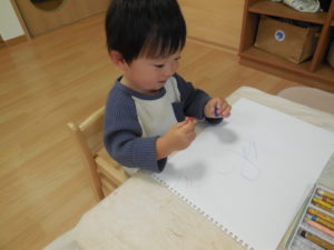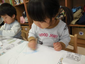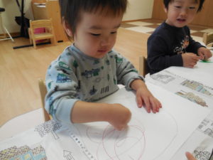 端まで描くよ~。色が付いて、楽しいね。                ぐるぐる!