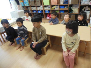 タンバリン組さん・ピアノ組さんの「正しい姿勢」についてのお話の時間です。
