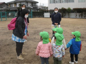 子ども広場に着いたら遊ぶ前に先生がいくつか大事なお約束のお話をしますが、真剣に聞いていた