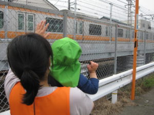 近くで見る電車に喜んで手を振っていましたよ!