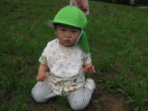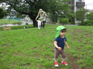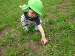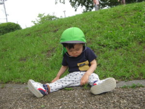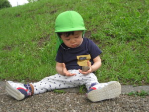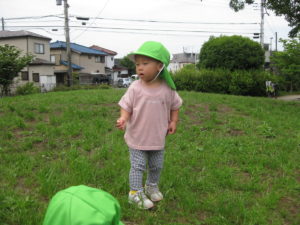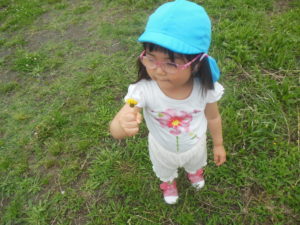 原っぱの上で歩いたり、座ってお花を見つけたり…