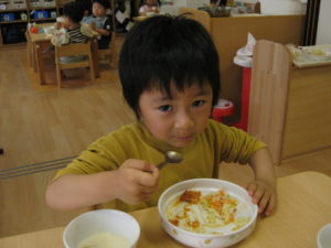 ふわふわのパンやチキンは食べやすかったようで、おかわりもたくさんしていました☺ (早)
