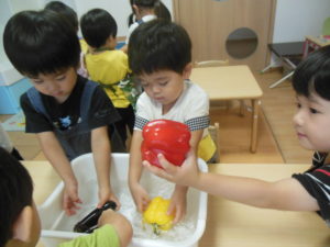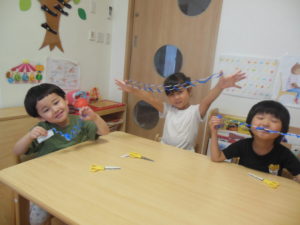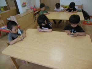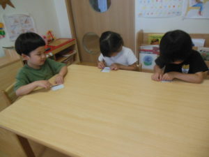 今日は雨で外に出られないので室内で製作をして過ごしました!