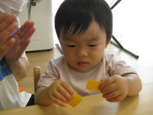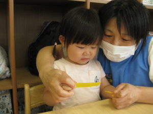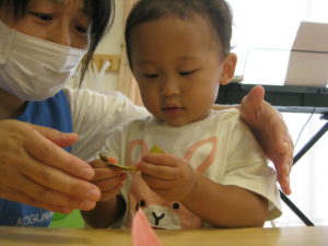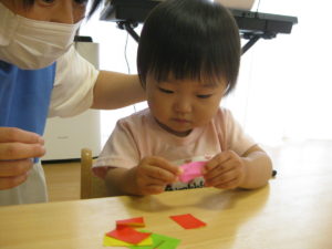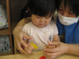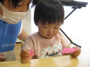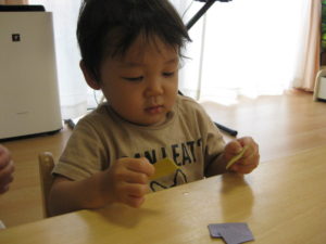 折り紙をちぎりました!指先をうまく使て挑戦!