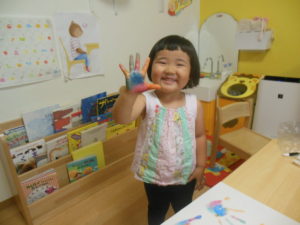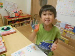 4色の色を使いきれいな手形を取っていました。