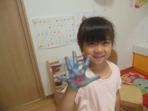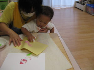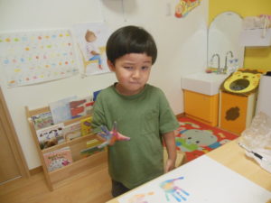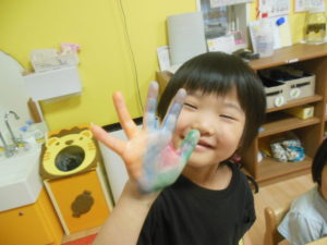スズ組さんは絵の具スタンプをしました。