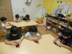 次に折り紙でサメを作りました。真剣に作り上手に作ることが出来ました。