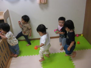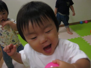絵の具スタンプの後はボール遊びをしました。