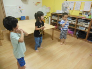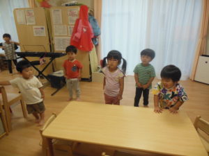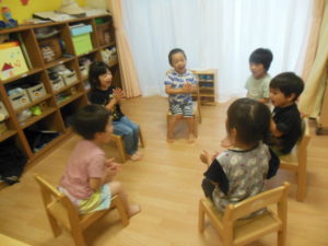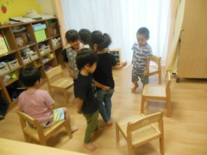 体操が終わりピアノさんはフルーツバスケットをして遊びました。
