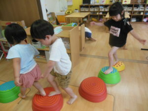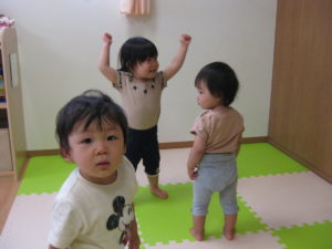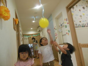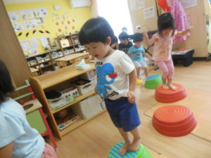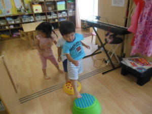 タンバリン組さんとピアノ組さんは、室内でトンネル遊び等を楽しみました。