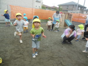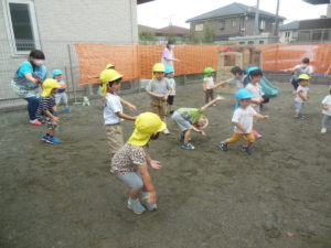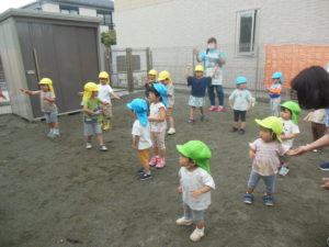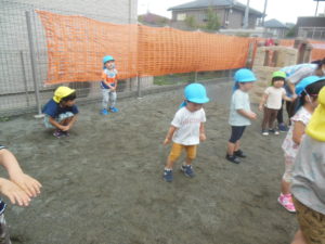 ちょうど雨があがっていたので、初めて園庭で行うことができました✨
