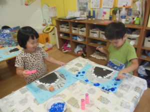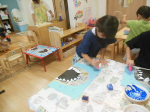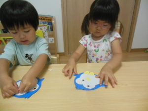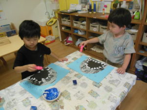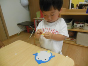 リズム体操の後、タンバリン・ピアノ組さんはお部屋で製作をしました❣