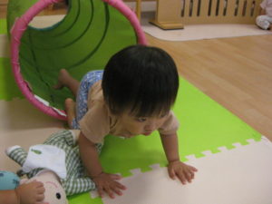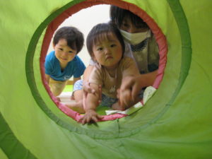その後は室内でトンネル遊びをしましたが、くぐるのが恐いお友だちもいました。