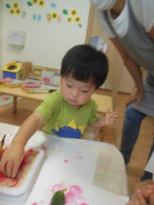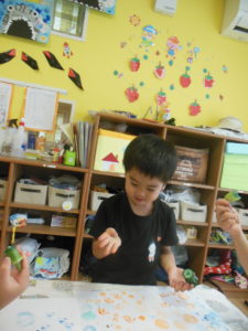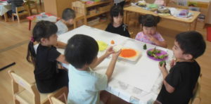 今日は、野菜スタンプをしました。