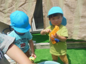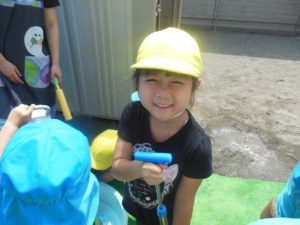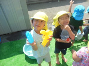 水鉄砲の人気が高まり、遠くをめがけて飛ばして楽しみました。