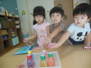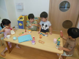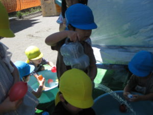 タンバリン組さんは水遊び前の、ごっこ遊びをしました。