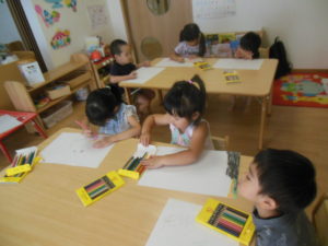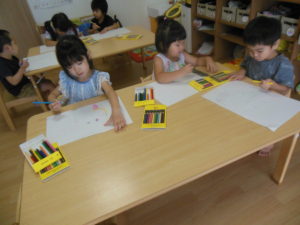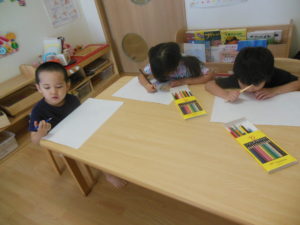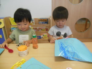 色水遊びや新聞遊びなどなど、思い出して一生懸命描いていました。
