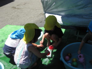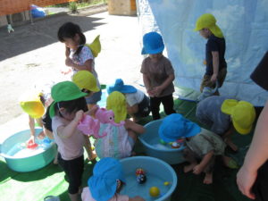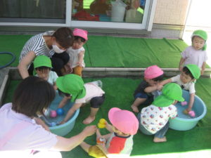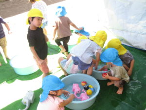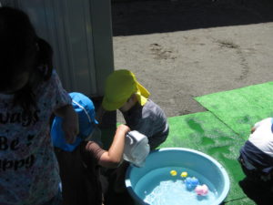 タンバリン組さん、ピアノ組さん、水遊びの様子です。
