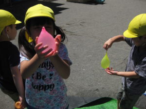 今日は、久しぶりに晴れたので、水遊びをしました。